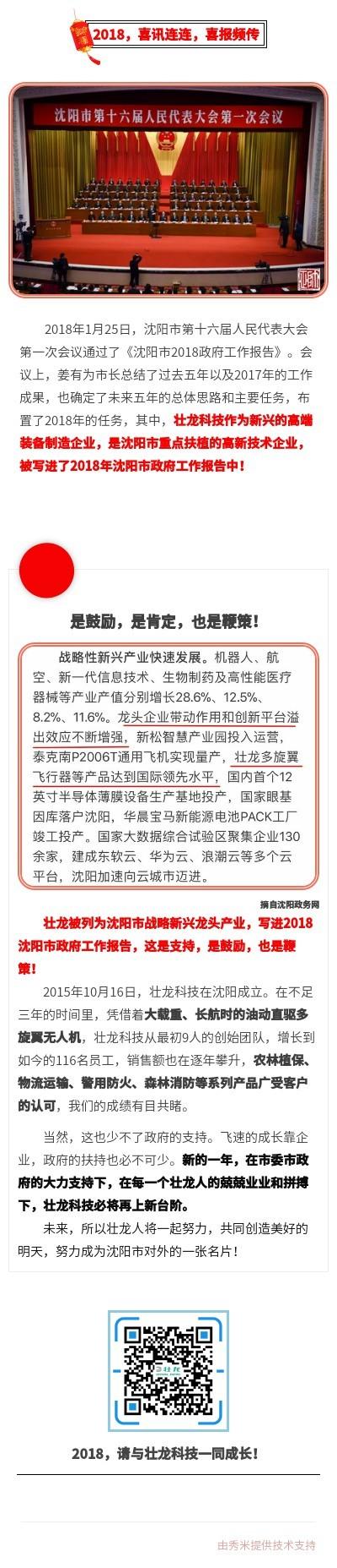 壯龍科技作為新興的高端裝備制造企業(yè),是沈陽(yáng)市重點(diǎn)扶植的高新技術(shù)企業(yè),被寫進(jìn)了2018年沈陽(yáng)市政府工作報(bào)告中!